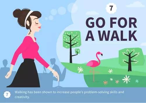 研究證明,散步有助于增強人們的創(chuàng)造力和解決問題的能力。