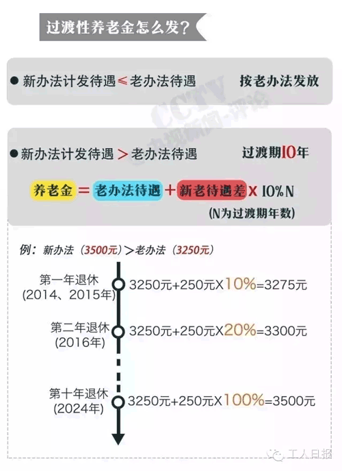 對于2014年10月1日前(簡稱改革前,下同)參加工作、改革后退休的“中人”設(shè)立10年過渡期,過渡期內(nèi)實(shí)行新老待遇計(jì)發(fā)辦法對比,保底限高。過渡期結(jié)束后退休的人員執(zhí)行新辦法。