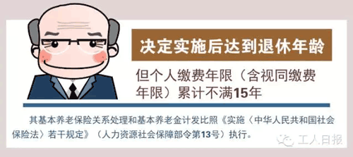 決定實(shí)施后達(dá)到退休年齡但個人繳費(fèi)年限累計(jì)不滿15年的人員,其基本養(yǎng)老保險(xiǎn)關(guān)系處理和基本養(yǎng)老金計(jì)發(fā)比照《實(shí)施〈中華人民共和國社會保險(xiǎn)法〉若干規(guī)定》(人力資源社會保障部令第13號)執(zhí)行。